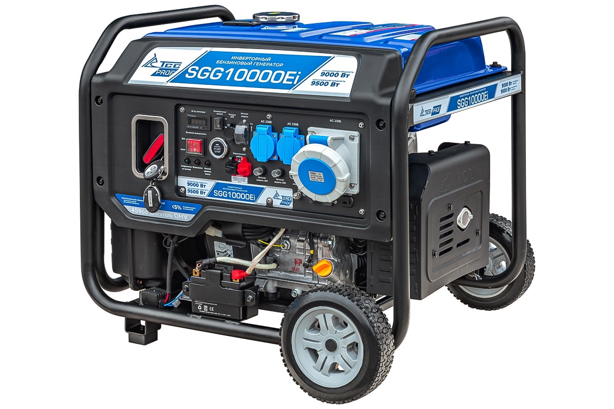 Описание товара: Профессиональный инверторный бензиновый генератор SGG 10000Ei с электростартом и разъемом для подключения блока автоматики, вырабатывает электричество с высокой точностью частоты и напряжения.